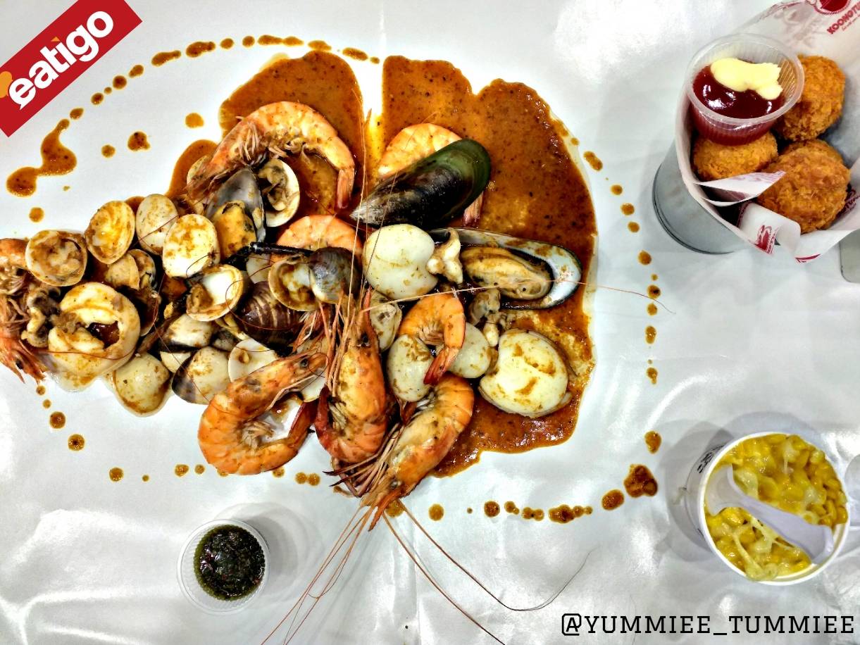 This was a great and different experience of eating delicious Seafood with hands, They have 3 different types of sauces bang bang , garlic pepper and lemon lime sauce 🤤🤤 They give you a plastic apron and gloves for you to not to get dirty.. 😁😁
